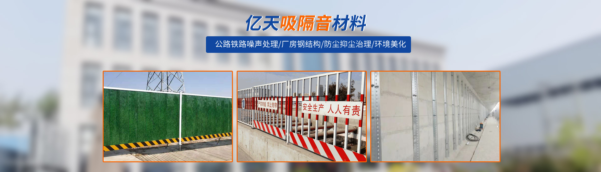 公司一直致力于環(huán)保產(chǎn)品的研發(fā)與生產(chǎn),主要涉足于公路鐵路噪聲處理、廠房鋼結(jié)構(gòu)、料倉(cāng)料棚,防護(hù)柵欄等